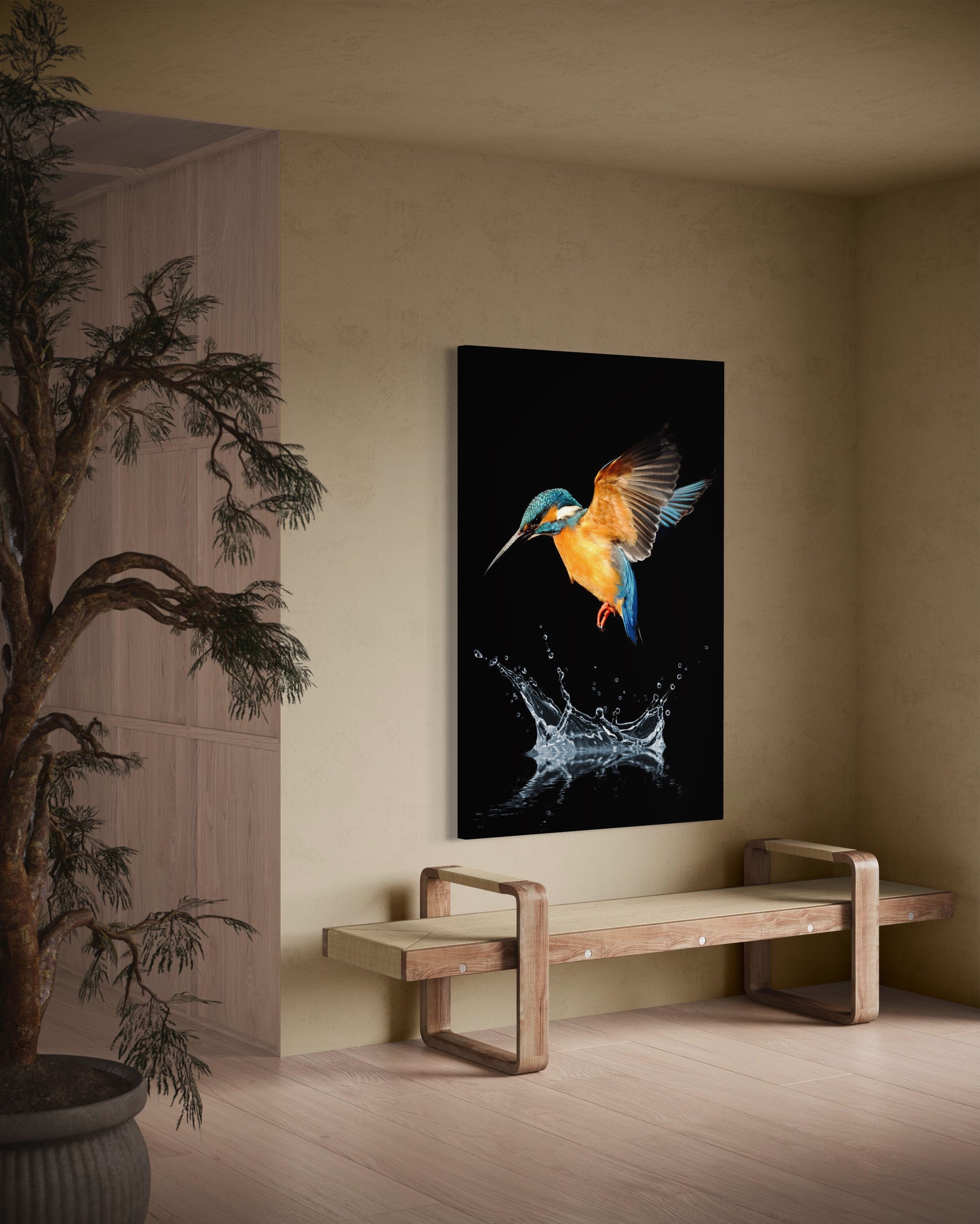 Impreso en alta definición sobre tela de algodón premium, cuidadosamente montado sobre un bastidor de madera sólida de pino de 4.5 cm de grosor, listo para colgarse sin necesidad de marco.