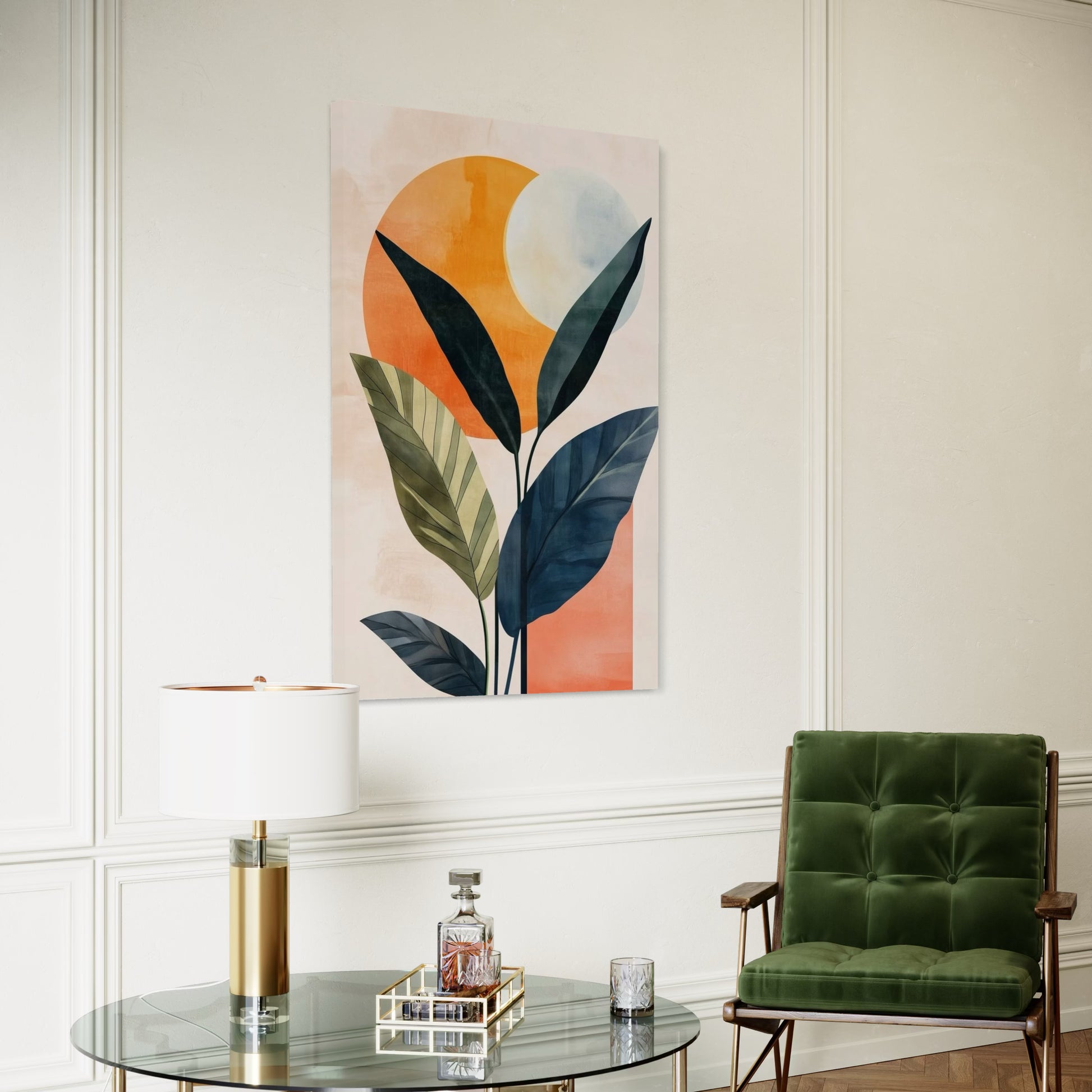 Impreso en alta definición sobre tela de algodón premium, cuidadosamente montado sobre un bastidor de madera sólida de pino de 4.5 cm de grosor, listo para colgarse sin necesidad de marco.