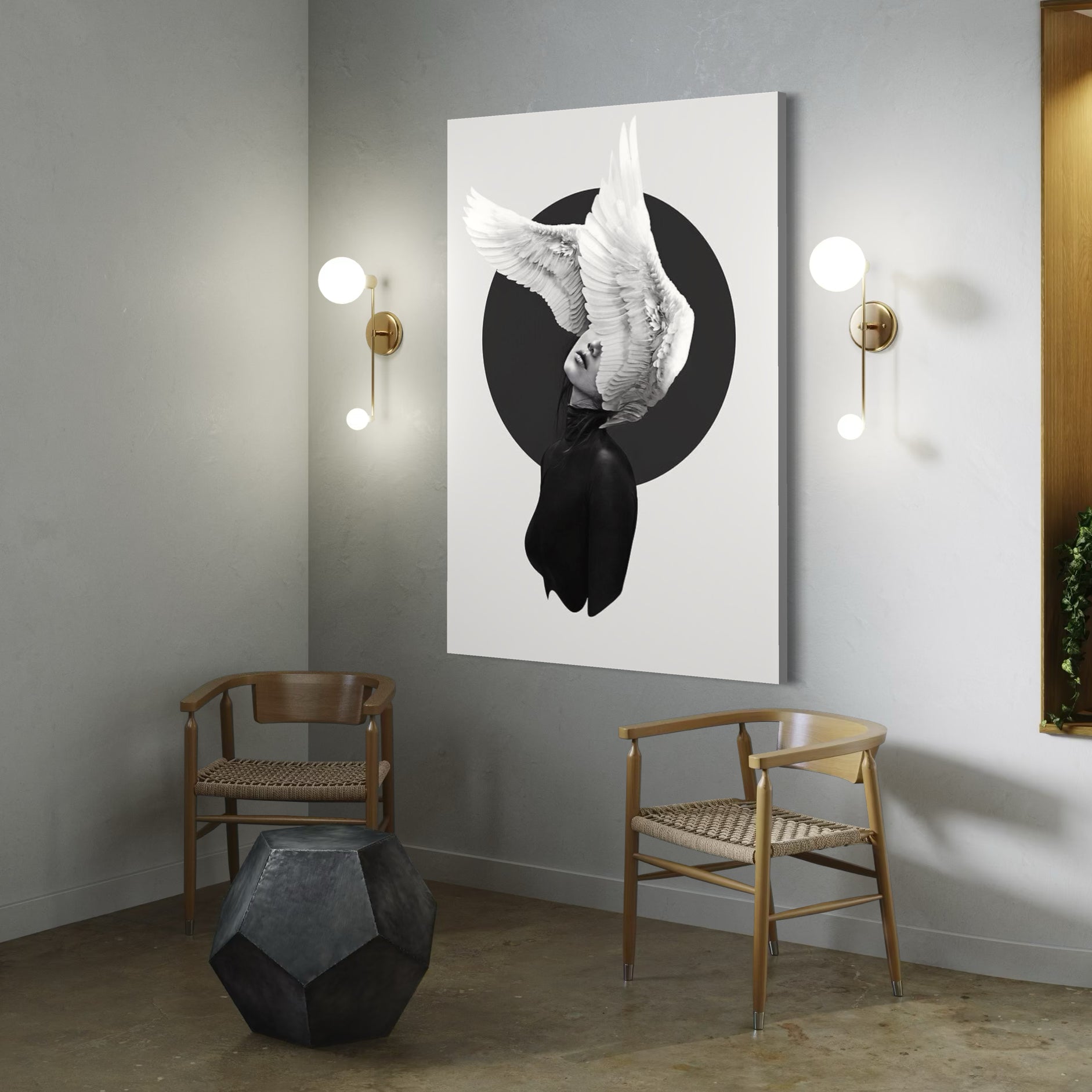 Impreso en alta definición sobre tela de algodón premium, cuidadosamente montado sobre un bastidor de madera sólida de pino de 4.5 cm de grosor, listo para colgarse sin necesidad de marco.