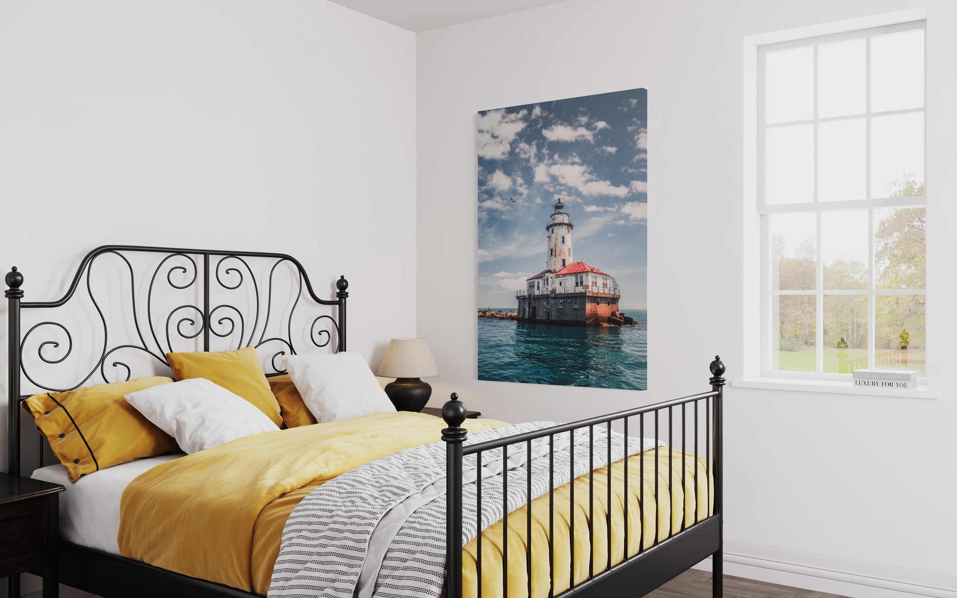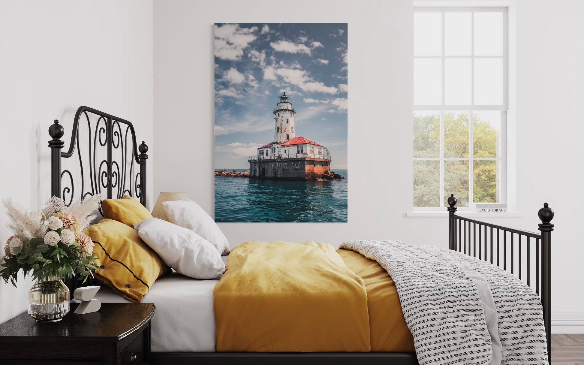 Impreso en alta definición sobre tela de algodón premium, cuidadosamente montado sobre un bastidor de madera sólida de pino de 4.5 cm de grosor, listo para colgarse sin necesidad de marco.